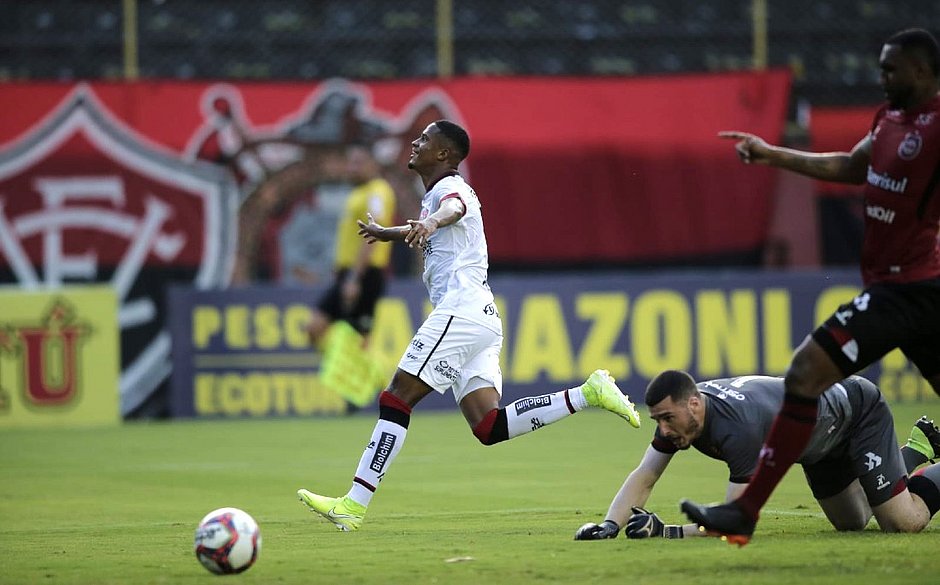 Fabinho confirmou a boa fase e abriu o placar aos 35 minutos do 1º tempo, marcando o seu segundo gol em jogos seguidos – ele havia feito o primeiro com a camisa rubro-negra contra o Itabaiana, na última terça-feira (19), pela pré-Copa do Nordeste.
