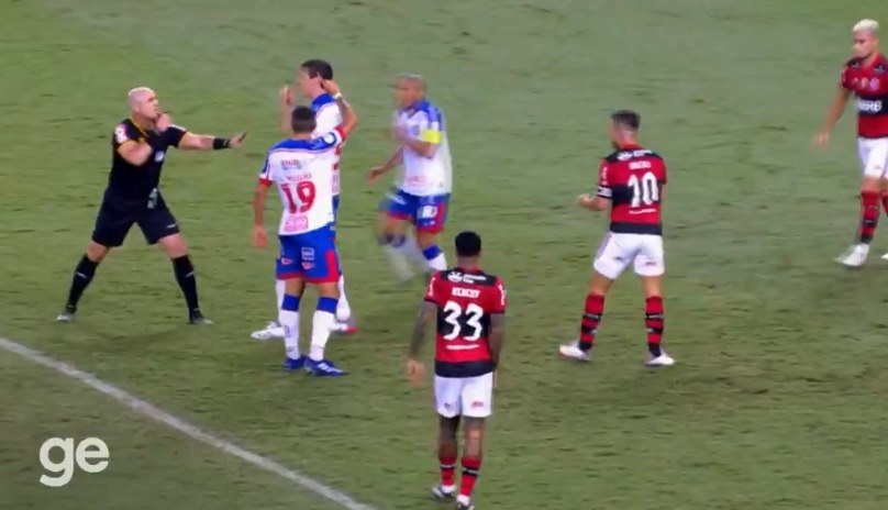 Na jogada, o meia Diego, do Flamengo, finalizou de bicicleta e a bola bateu no peito do zagueiro Germán Conti, do Bahia. O árbitro Vinícius Gonçalves Dias Araújo acusou a penalidade, foi chamado pelo árbitro de vídeo para revisar o lance e mesmo assim manteve a marcação. Em áudio divulgado pela entidade, Vinícius afirmou que houve uma “ação de bloqueio”.