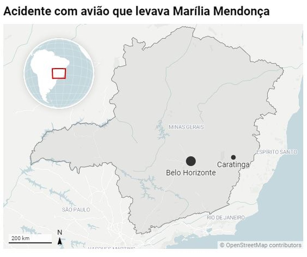 A cantora Marília Mendonça, de 26 anos, e mais quatro pessoas morreram na tarde desta sexta-feira (5) após a queda de um avião de pequeno porte perto de uma cachoeira na serra de Caratinga, interior de Minas Gerais. Inicialmente a assessoria da cantora informava que todos tinham sido retirados e levados para o hospital.