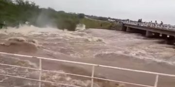 Pela força que a água passa no sangradouro do açude de tapera, dá para se ter uma ideia dos estragos