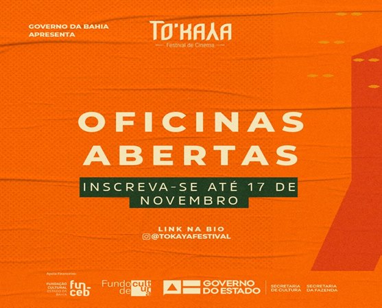 Primeiro evento de exibição de filmes da região do sisal, o TO’KAYA Festival de Cinema oferece oficinas gratuitas com foco na produção audiovisual. Até o dia 17 de novembro é possível se inscrever nas oficinas Os sertões no cinema, ministrada por Uilma Queiroz, e O Cinema e o Espelho, ministrada por Everlane Moraes. Inscreva-se aqui:
