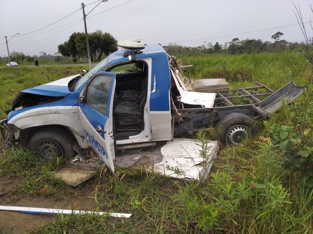 A viatura ficou destruída e perdeu parte da carroceria. De acordo com a Polícia Rodoviária Federal (PRF), chovia no momento do acidente, quando a viatura saiu da pista e capotou. Não há detalhes do que fez com que o motorista perdesse o controle da direção.