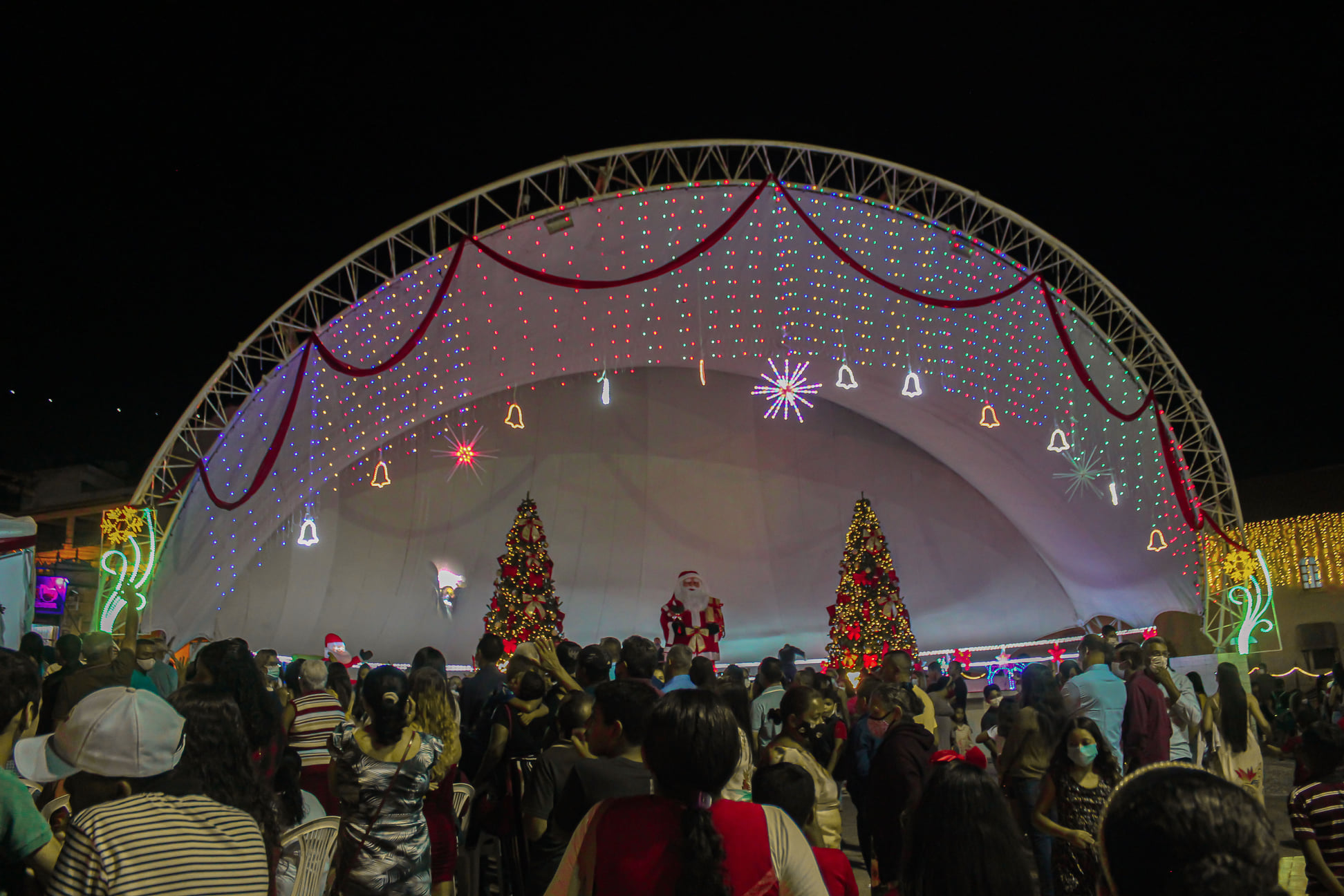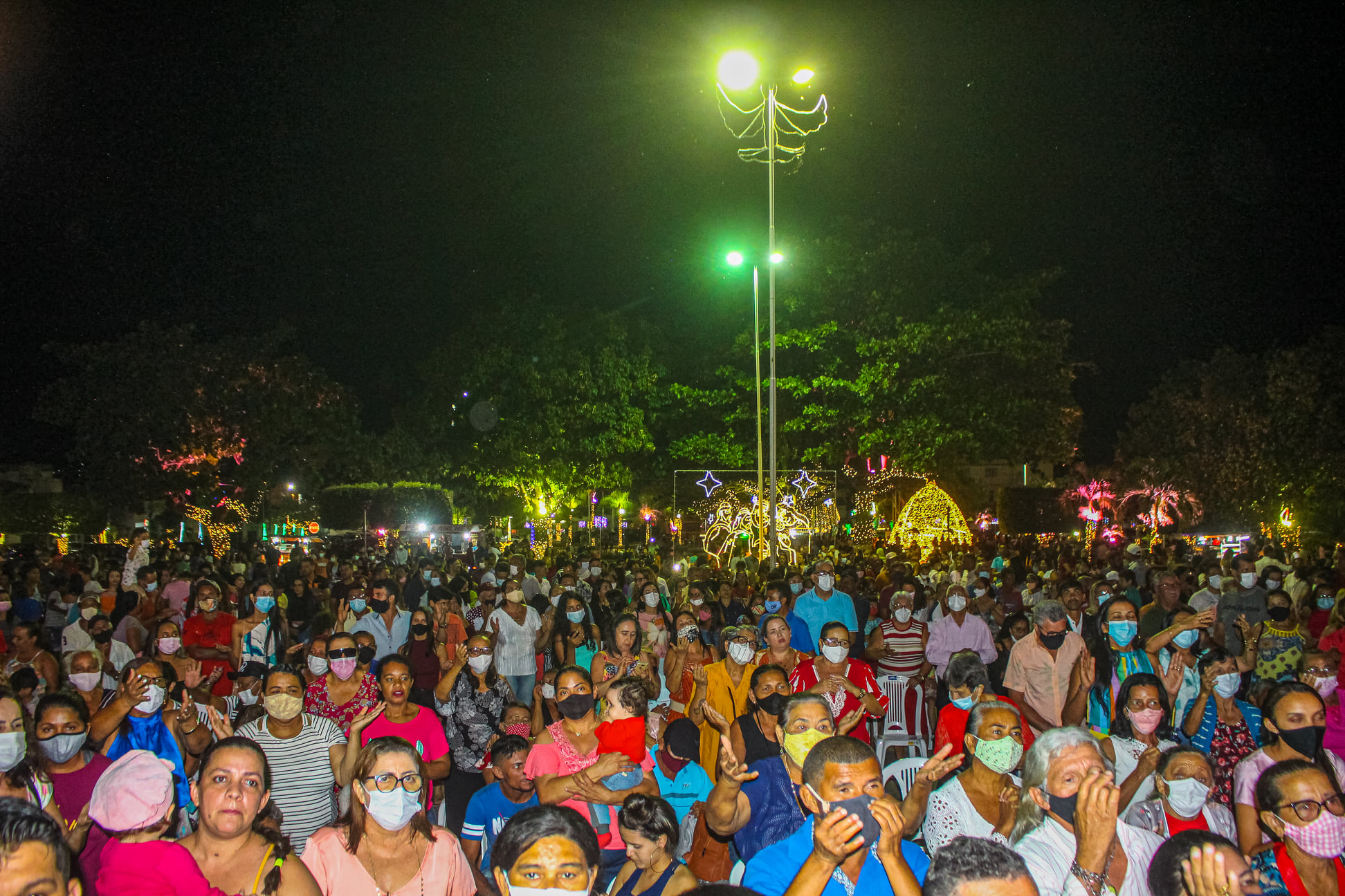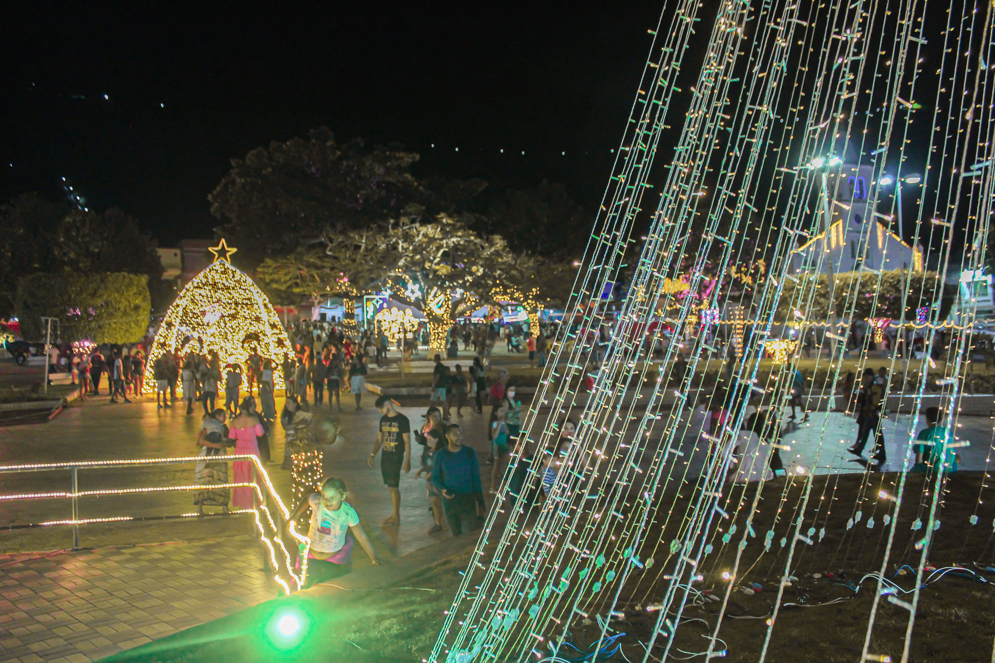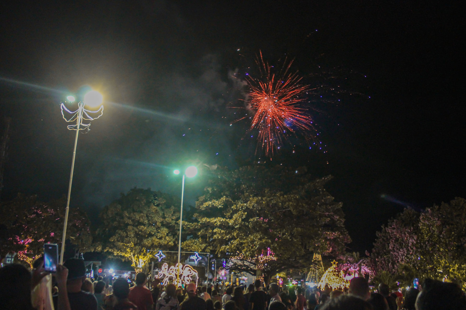 Uma multidão lotou a praça Monsenhor Berenguer para acompanhar o acendimento das luzes com a presença das autoridades politicas e religiosas.