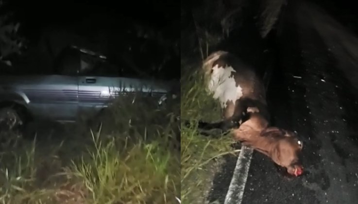 Nas imagens feitas por um cidadão no local do acidente ele narra que no trecho haviam várias bovinos e que minutos antes tinha se livrado de um animal.