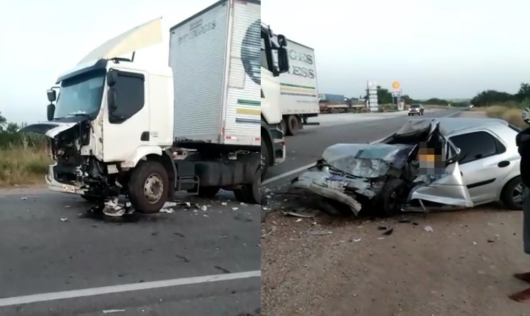 Motorista de Celta morre depois de colidir de frente com carreta na BR 116/Norte