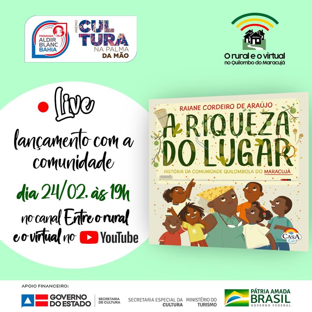 A live de lançamento do livro será no dia 24 de fevereiro de 2022, às 19h, no canal do YouTube“Entre o rural e o virtual”, com a participação da professora Raiane Cordeiro, autora do livro; a proponente Marivania Silva e depoimentos de outros membros da comunidade quilombola sobre as suas impressões e perspectivas com relação a implementação do projeto.