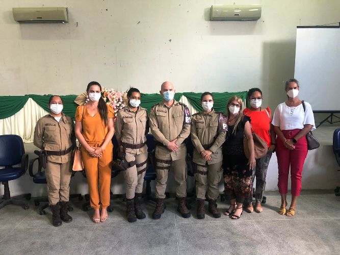 Logo após a atividade com a tropa, a tenente Nina Marques e os comandantes das supracitadas Companhias Destacadas se reuniram com a Rede de Atenção à Mulher em Situação de Violência