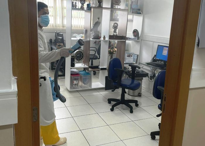 Os técnicos da empresa desinfetaram meticulosamente salas e áreas que representam uma ameaça de contaminação cruzada, usando o sanitizantes diversos e que se adequem às restrições do ambiente. Conforme representante da empresa o procedimento tem 99,9% de efetividade contra vírus, bactérias e outros patógenos.
