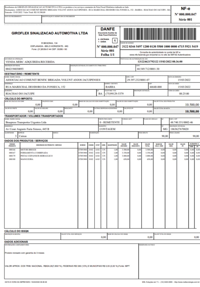 A compra do kit foi possível graças a uma campanha realizada pelos voluntários e a população de Riachão do Jacuípe e região mais uma vez, [já que sempre contribuiu para melhoria do serviço] fez depósito via PIX ou doaram dinheiro durante blitz solidária, tendo arrecadado o total de R$ 16 mil.