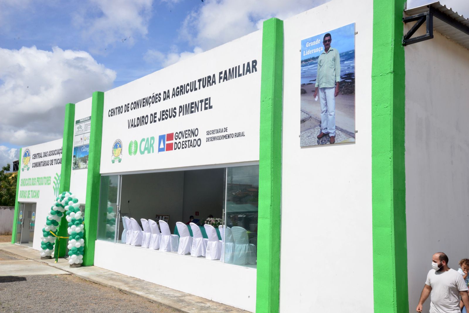 Foi inaugurado nesta quarta-feira (9), o Centro de Convenções da Agricultura Familiar Valdiro Jesus Pimentel, no município de Tucano, no Território Sisal. Um espaço que servirá para comercialização de produtos rurais, realização de cursos e demais ações que podem fomentar a permanência de homens e mulheres que vivem no campo.