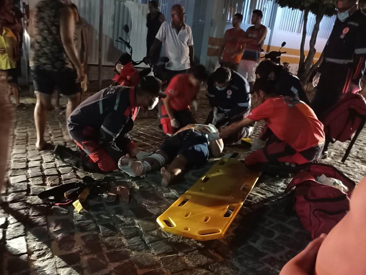 A vítima identificada como Letycia Araújo da Silva, 27 anos, foi socorrida com suspeita de fratura em uma das pernas e escoriações pelo corpo. Neste acidente o SAMU também se fez presente.
