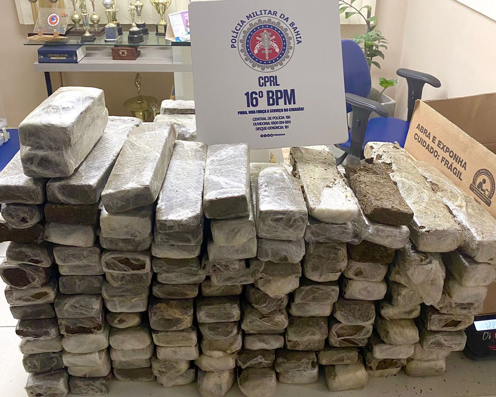 Ao serem abordados e feita a busca no interior dos veículos, foram encontrados 114 tabletes de substância análoga à maconha, divididos nos dois veículos, sendo 45 tabletes no primeiro carro e 69 tabletes no segundo. Logo, foi dada a voz de prisão aos quatro envolvidos com idades 26, 23, 22 e 20 anos, e conduzidos para Delegacia de Serrinha para os procedimentos legais.