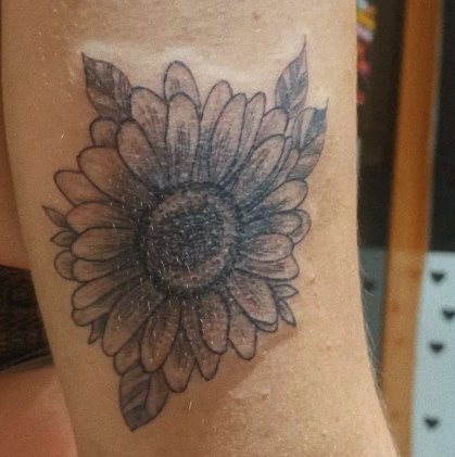A jovem fez três tatuagens em homenagem ao pai dela. A segunda foi a imagem de um girassol. “É a tatuagem que mais me toca, o girassol marca muito minha história com ele, e foi a flor que estava no caixão quando ele foi cremado”.