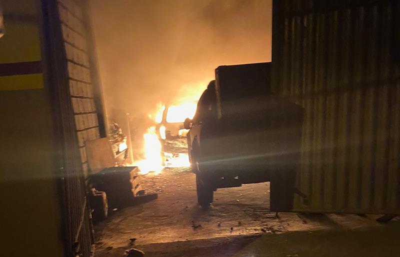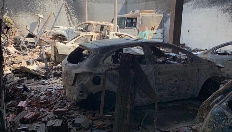Haviam 12 veículos dentro do estabelecimento, sendo que 11 pertenciam a clientes. Todos foram incendiados, com exceção de uma Van