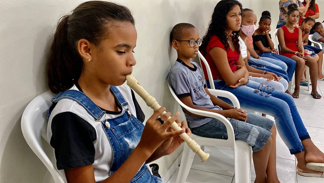 “Duas turmas do Centro de Referência e Assistência Social participaram das oficinas de música, onde as crianças e adolescentes tiverem a oportunidade de conhecer mais de pertinho nossos instrumentos e curiosidades sobre teoria musical”, destacou o maestro Josevaldo Nim.