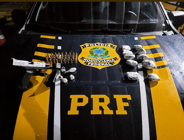 A Polícia Rodoviária Federal (PRF) prendeu um passageiro de ônibus com uma pistola, dezenas de munições, carregadores, maconha e haxixe no final da tarde de quarta-feira (25), durante fiscalização no Km 229 da BR 407, trecho do município de Capim Grosso (BA), no Norte da Bahia.