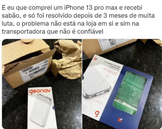 Outros internautas relataram também terem passado por problemas similares – um deles afirmou ter comprado um celular e recebido, no lugar, uma barra de sabão.