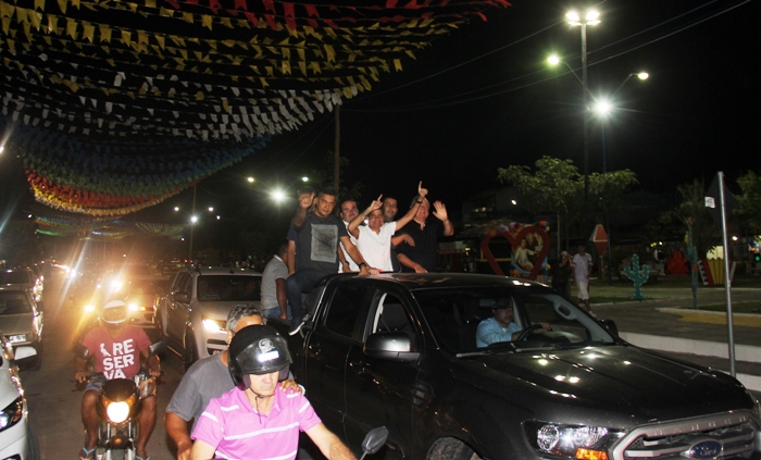 Em carro aberto, Neto percorreu ás ruas de Riachão ao lado do prefeito Carlinhos Matos, Cacá Leão, Paulo Azi e Júnior Nascimento