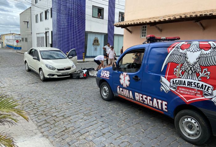 Uma mulher identificada como Daniela Lima, 30 anos, moradora do bairro Açudinho em Conceição do Coité deu entrada no início da tarde desta quinta-feira, 16, na emergência do Hospital Português após ser socorrida pelo Águia Resgate, projeto de socorristas voluntários, após a moto que pilotava ser atingida por um carro em um cruzamento que fica a cerca de 250 metros do hospital. Não tivemos informações de quem provocou o acidente.