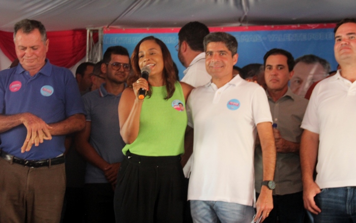 Ao discursar durante o ato em Valente ela revelou que tem uma relação afetiva com Valente onde chegou em 2014 acompanhando o então candidato a deputado federal João Gualberto, ao lado de grandes amigos e citou Tom Araújo que ela disse ser um legítimo representante da região sisaleira, que em Valente fez grandes amigos e citou o ex-prefeito Marcos Adriano, o atual prefeito Ubaldino a que parabenizou pela organização da cidade, além dos médicos Doutor Luiz e Edil, o advogado Thiago Rios (Pingo) Mário do Posto e tantos outros.