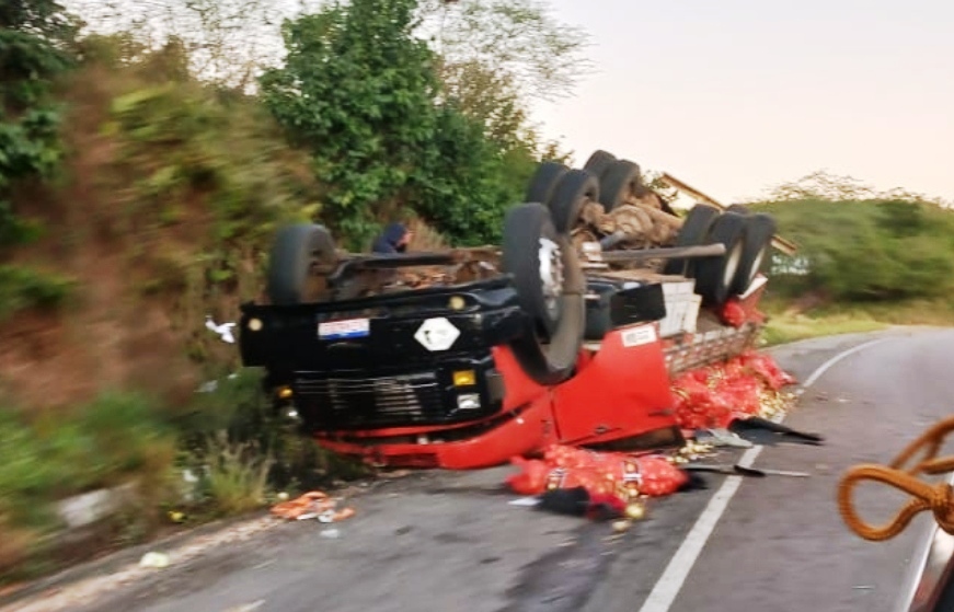 Na manhã deste sábado, 9, um caminhão com carga de cebola que viajava no sentido Capim Grosso capotou na BR 324, próximo à ‘curva do esconso’ região do Povoado Palmeirinha no município de Jacobina.