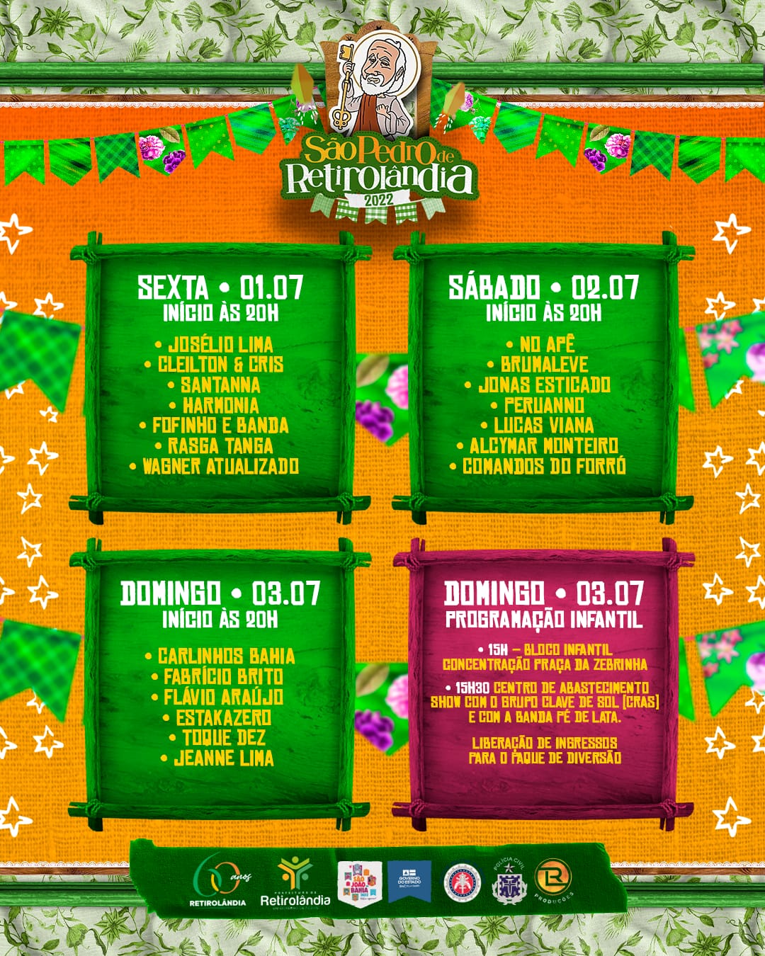 Este primeiro dia de Julho marca também a abertura da Festa de São Pedro do Município, considerado um dos mais tradicionais do Estado da Bahia – Confira toda programação até domingo