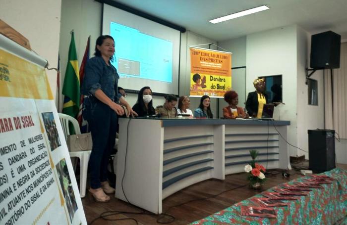 A mesa temática foi composta por Cleuza Juriti, membro do Movimento Dandara do Sisal e presidente do Conselho Municipal da Mulher de Serrinha; Wilma Rodrigues, representante do Movimento de Mulheres Negras Dandara do Sisal; Márcia Oliveira, psicóloga da Secretaria de Saúde; Lindinalva de Paula, presidente do Movimento de Mulheres Negras da Bahia; e Sueli Santos, também do Movimento.