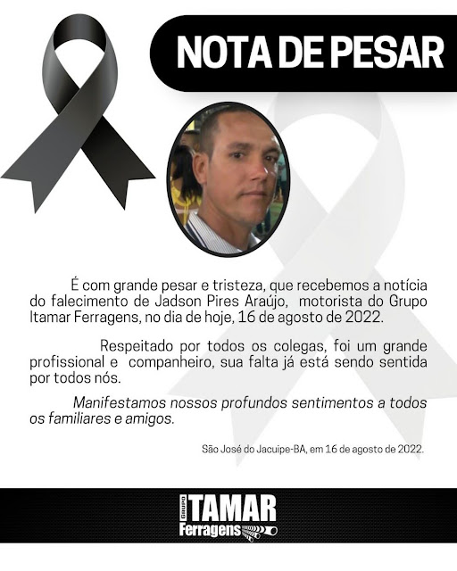 O motorista identificado como Jadson Pires Araújo, dirigia para o Grupo Itamar Ferragens com sede em São José do Jacuípe no Território da Bacia do Jacuípe que divulgou nota de pesar.