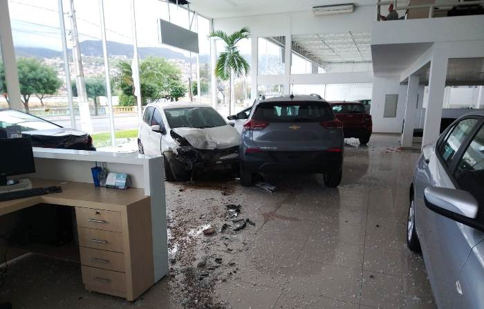 De acordo com informações policiais, o carro estava em alta velocidade quando o motorista saiu da via de rolamento, quebrou os vidros da fachada e invadiu a loja, atingido cerca de cinco automóveis 0km no interior da concessionária.