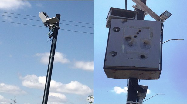 Um radar instalado as margens da BA 120, no trecho do município de Retirolândia está sem funcionamento desta madrugada de quarta-feira, 21, quando foi atingido por disparos de arma de fogo, supostamente de uma espingarda calibre 12, já que no local foram encontrados algumas cápsulas.