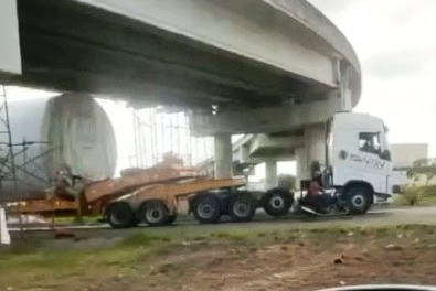 Toda estrutura do viaduto já estava escorada devido ao impacto causado no mês de julho por outra carreta que trafegava pelo local.