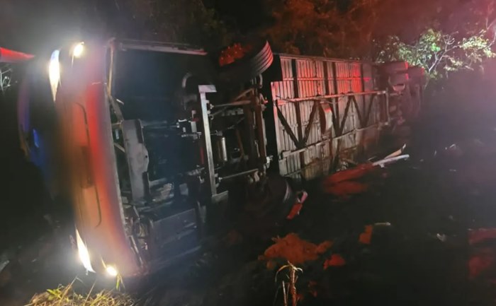 Segundo as informações divulgadas pelo Samu, o ônibus da empresa Neu Turismo sediada em Pedra Vermelha, Distrito de Monte Santo – BA, seguia para São Paulo e tombou às margens da pista. Chovia no momento do acidente. Duas mulheres, de 32 e 38 anos, e um homem, de 28 anos, ficaram presos às ferragens e morreram no local.
