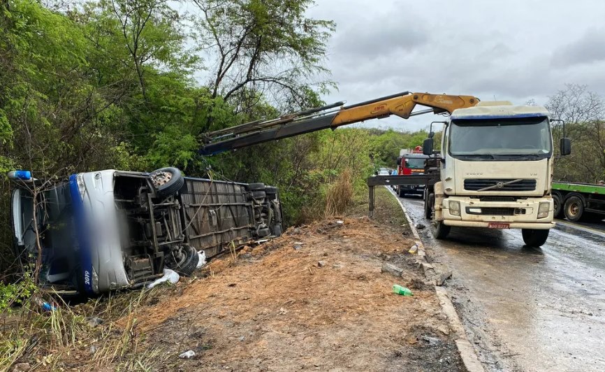 O acidente foi na altura do KM-492 e o trânsito foi interditado nos dois sentidos para retirada dos corpos e do ônibus. Às 11h, a PRF informou que a interdição era parcial.