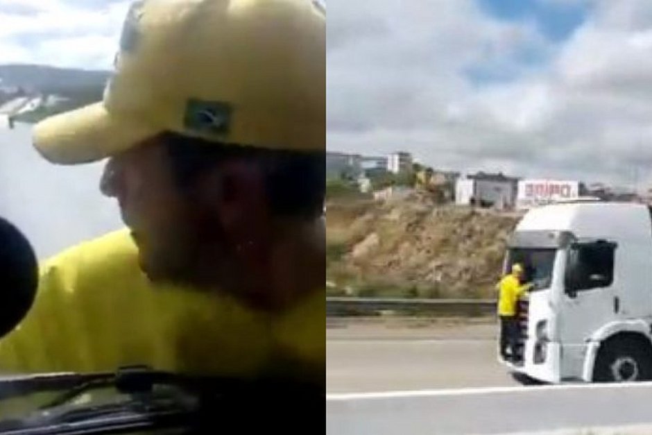 Em certo ponto, o manifestante faz um sinal de cabeça e o motorista diz que vai parar para ele descer do para-brisa. “Vou parar ali para você descer, você desce, beleza? Não quero confusão, véio, tô trabalhando. Saí da minha casa… tenho três filhos”.