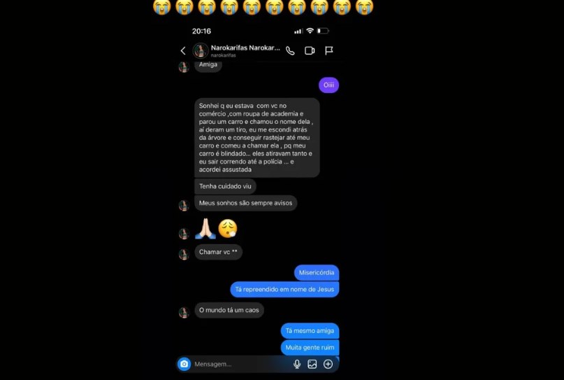 Após relatar o sonho com detalhes, Naroka, como era conhecida nas redes sociais, pediu para que a amiga tivesse cuidado.