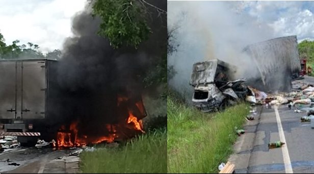O caminhão com placa de Feira de Santana fazia entregas naquela região quando colidiu com o carro de passeio que ficou debaixo do baú, ambos pegaram fogo em seguida.