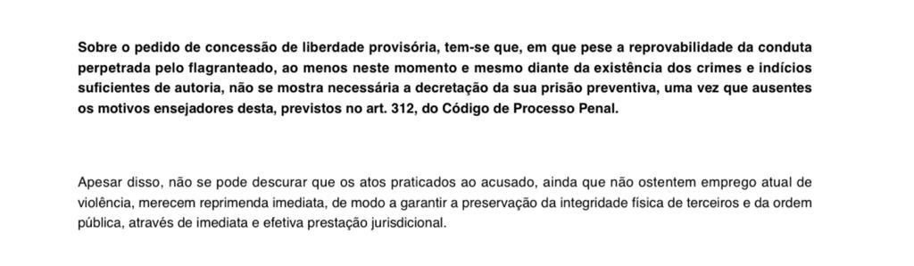 O relaxamento de prisão aconteceu horas depois do flagrante