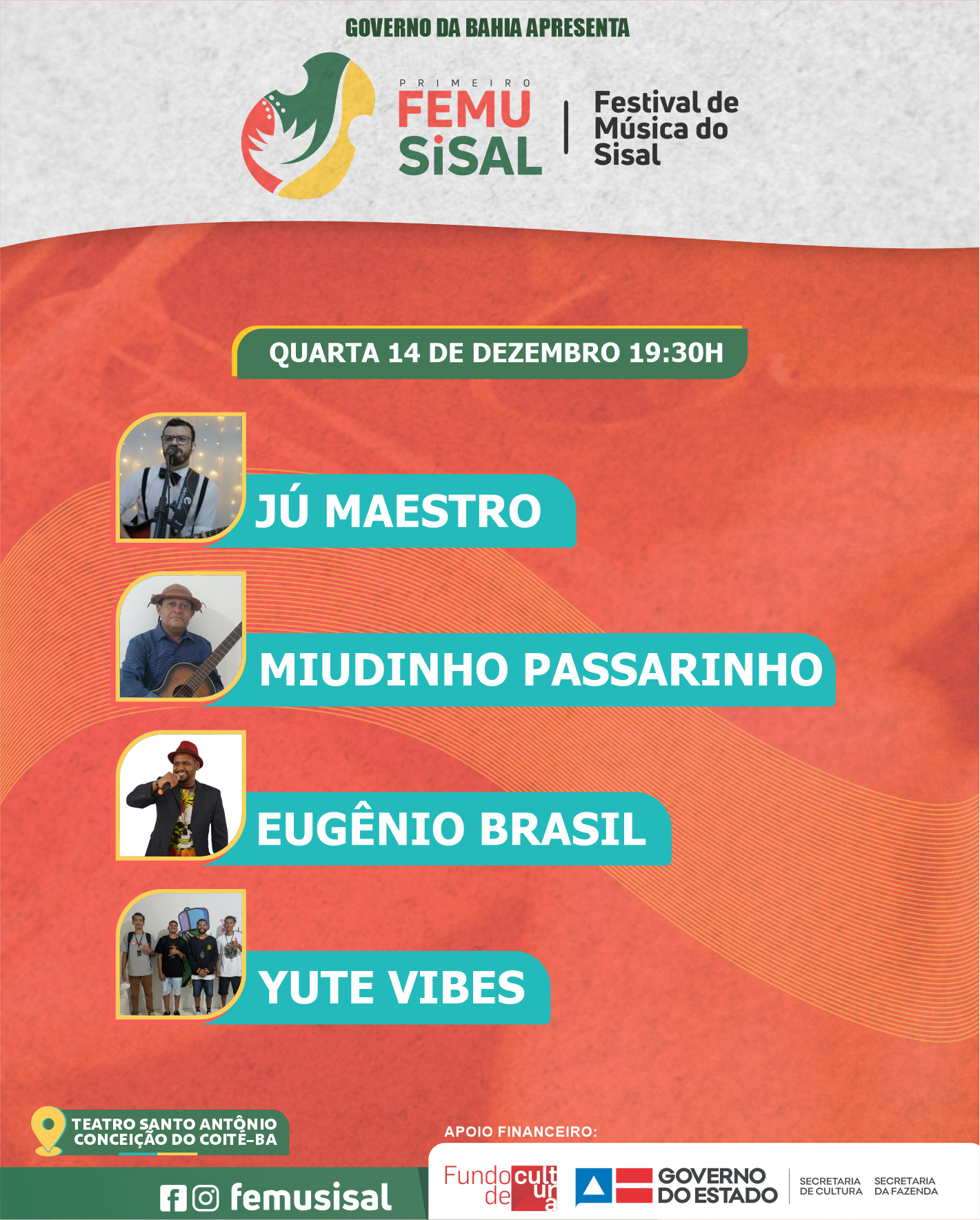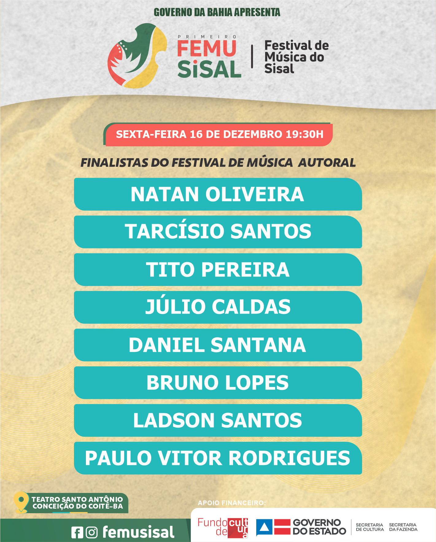 E no último dia do festival, acontece a etapa final do concurso do 1° Festival de Música Instrumental Autoral do Sisal