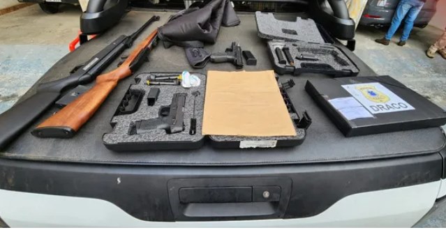 Quatro armas foram apreendidas e, de acordo com a polícia, todas são registradas, mas serão apreendidas.