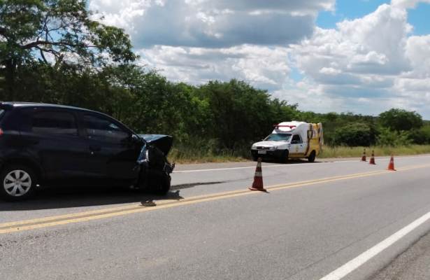 Colisão frontal envolvendo dois carros de passeio deixa dois feridos na BR 324 (atualizada)