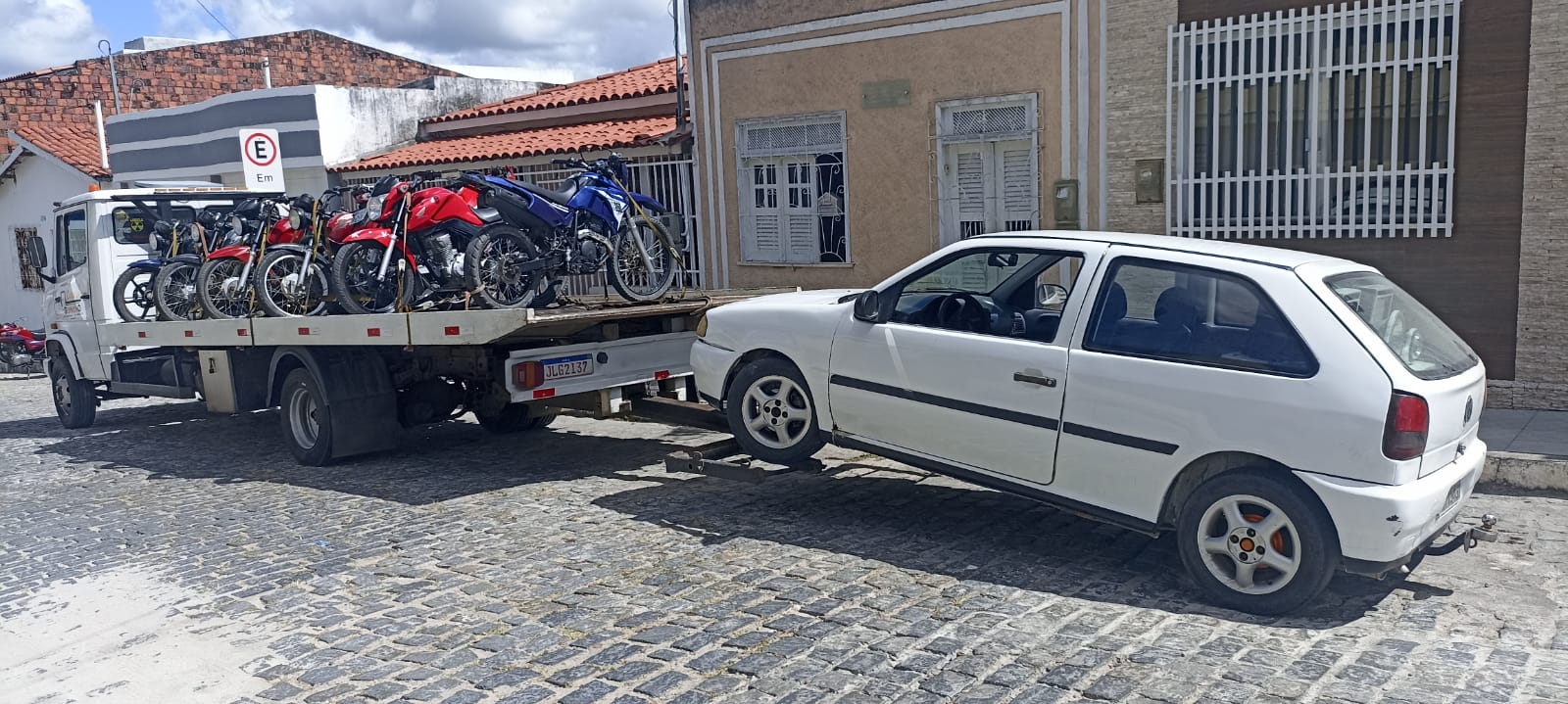 Onze veículos com diversas irregularidades foram conduzidos da sede da 4ª Cia para o pátio veicular da cidade de Conceição do Coité na manhã desta segunda-feira, 30. Todos apreendidos durante a tarde e noite enquanto acontecia uma festa de motos no Parque de Exposições.