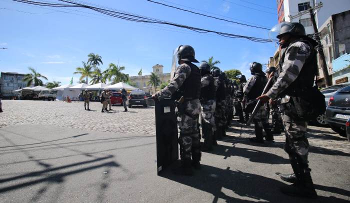 Equipes de negociação do Bope dialogam com os radicais para evitar aglomeração na porta do Quartel General da 6ª Região.