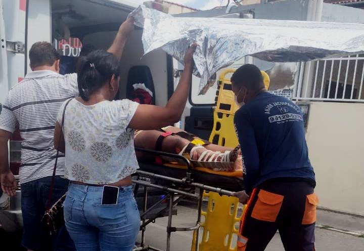 Segundo a Brigada, ao chegar no local deparou com a vítima com escoriações pelo corpo e suspeita de fratura de fíbula e tíbia e a mesma perdia muito sangue em consequência da fratura exposta na perna direita.
