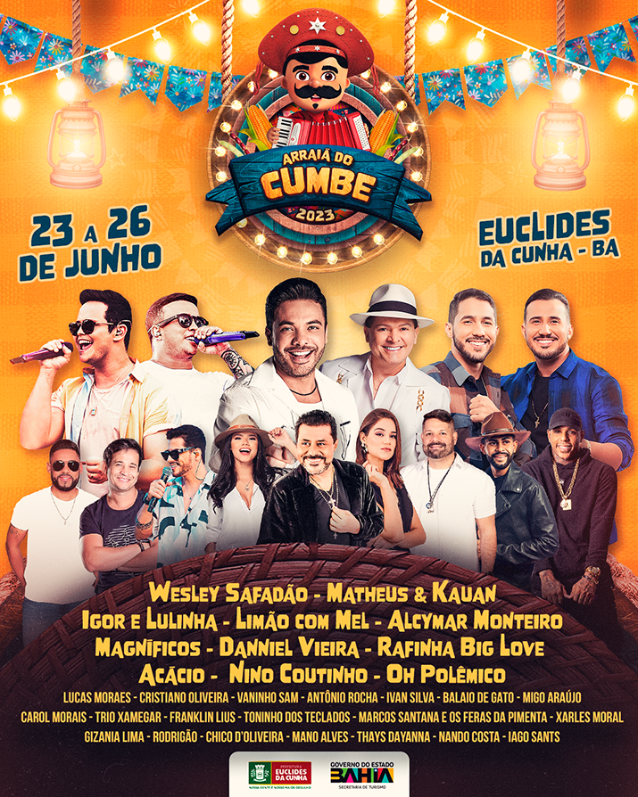 A Prefeitura de Euclides da Cunha divulgou na noite de sexta-feira, 24, as atrações que animarão o Arraiá do Cumbe 2023. O anúncio foi feito pelo prefeito Luciano Pinheiro durante uma live oficial transmitida para milhares de pessoas.