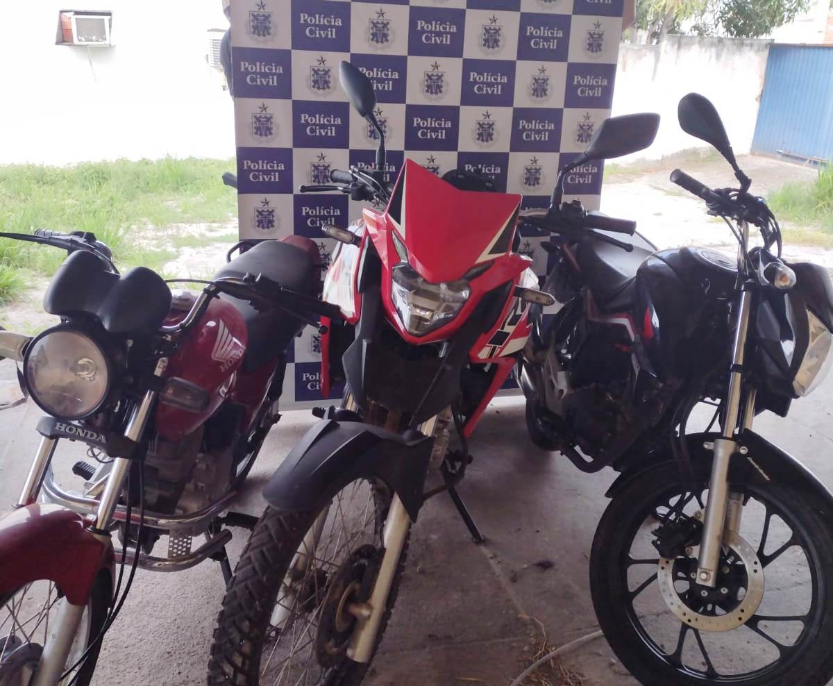 Agentes da Polícia Civil da Delegacia Territorial de Conceição do Coité, apreendeu nesta quarta-feira, 22, no povoado de Santa Rosa, três motocicletas com restrição de furto e roubo.