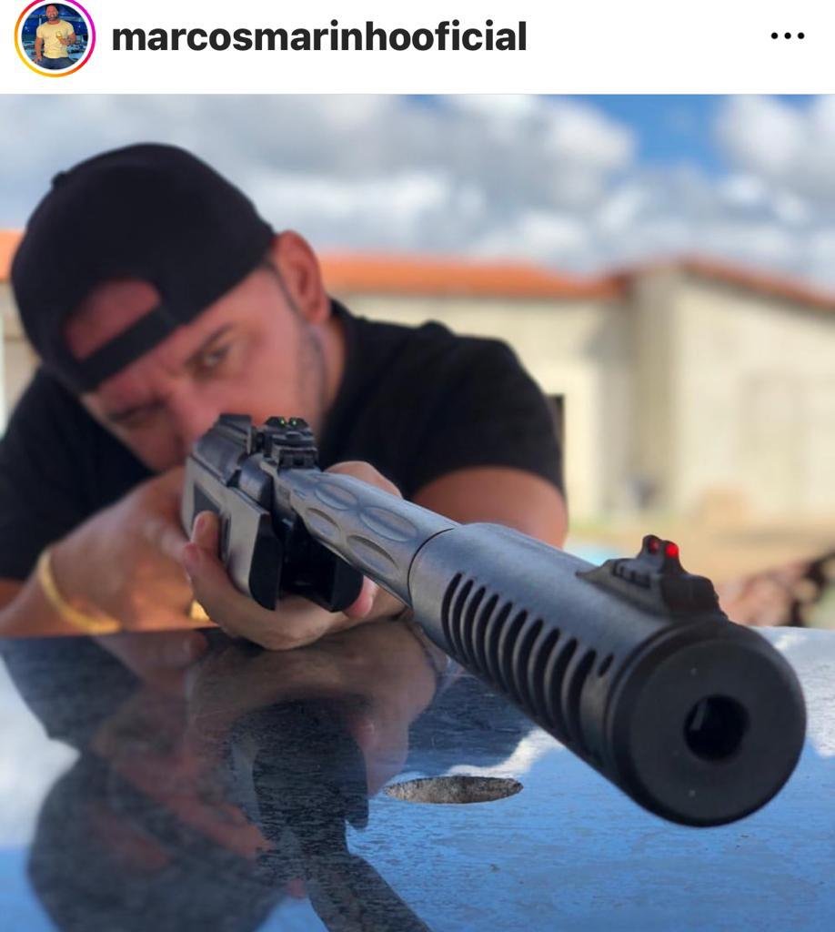 Marcos Marinho também gostava de ser fotografado com armas, como mostra a página dele no Instagram. A autoria e a motivação do crime devem ser investigadas pela delegacia de homicídios de Feira de Santana.