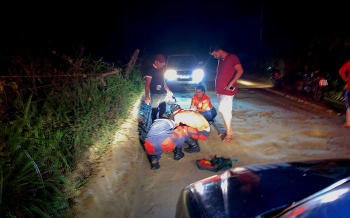 Na noite deste sábado, 25, a equipe do Águia Resgate foi acionada por volta das 21h10 para prestar socorro a mais uma vítima que pilotava uma motocicleta e foi surpreendida por uma vaca no meio da estrada.