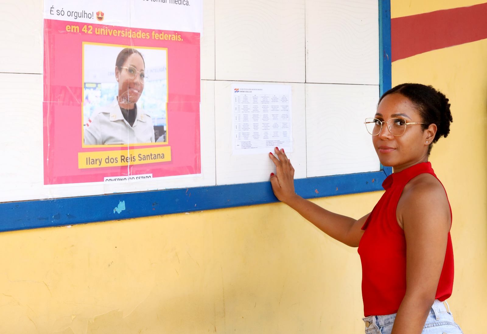 Integrante de uma família de pescadores e marisqueiras, Ilary dos Reis Santana, 23 anos, foi aprovada este ano em 42 universidades federais espalhadas pelo país e vai poder escolher uma delas para realizar o seu sonho de criança de estudar medicina. Natural de Maragogipe, no Recôncavo baiano, a futura médica, que é soldada da Polícia Militar da Bahia (PMBA), visitou o Colégio Estadual Gerhard Meyer Suerdieck, nesta quinta-feira (9), local que estudou, pela primeira vez desde que recebeu a notícia da aprovação. Ela conversou com os alunos e compartilhou suas experiências pessoais e rotina de estudo.