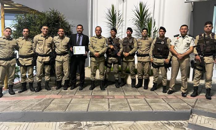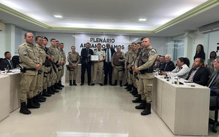 Policiais militares da 4ª Companhia da Polícia Militar (4ª Cia PM), do 16º Batalhão (16º BPM), foram homenageados com outorga de Moção de Aplausos pelos relevantes serviços prestados ao município. Honraria proposta pelo vereador Gease Freitas (PT) foi aceita na Câmara por unanimidade e entregue durante a Sessão Ordinária da Casa Legislativa na noite de segunda-feira, 06.