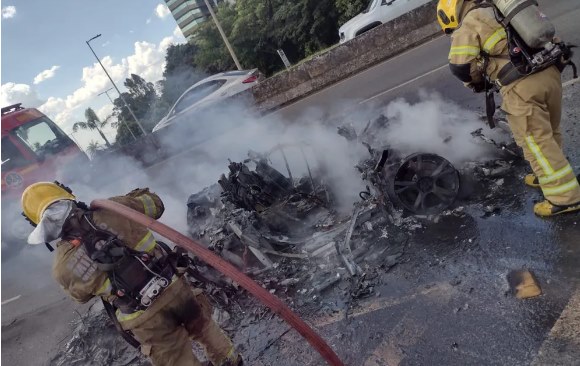 RS – Carro de luxo pega fogo em avenida de Belo Horizonte